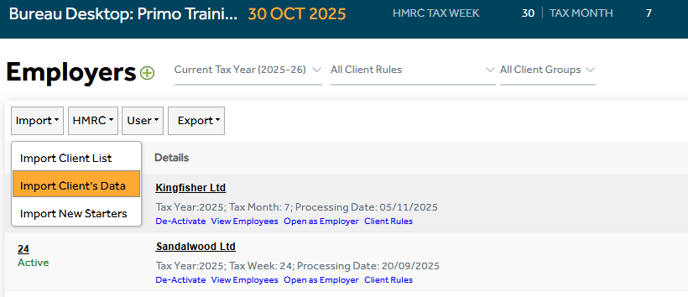 Under the Data import section, click ‘Import Client’s data.